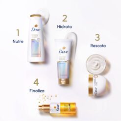 - El Nuevo Óleo Dove puede aplicarse directamente en el cabello o primero en las manos, priorizando los medios y las puntas para obtener mejores resultados.