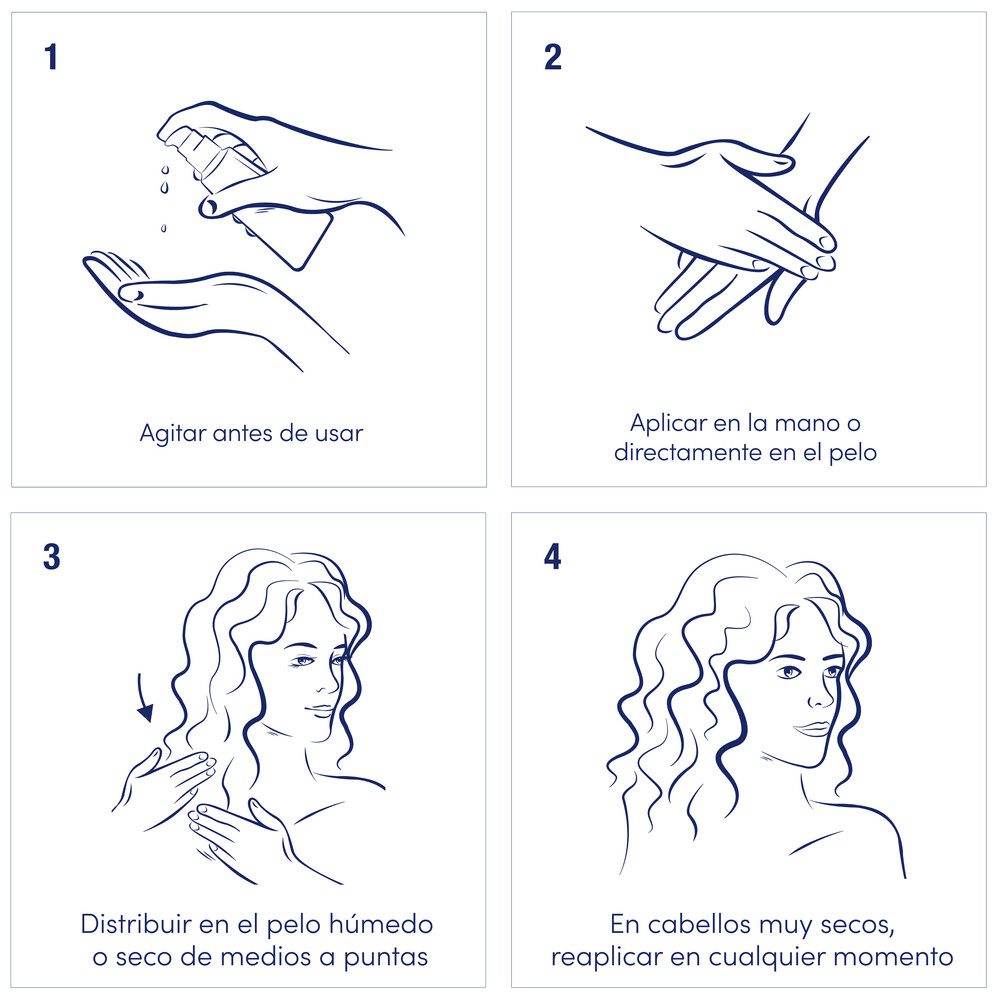 Con el óleo + serum Bifásico Dove Bond Intense Repair, se pueden experimentar hasta diez beneficios diferentes, incluyendo un cabello cuatro veces más fuerte y una reducción del 91% de las puntas abiertas. Además, este producto, controla el frizz durante 72 horas, proporciona un brillo extra que dura hasta 48 horas y protege contra futuros daños y el calor del styling. Este producto no solo realza el color natural del cabello, sino que también devuelve su movimiento natural y ofrece un blindaje completo. Para aplicarlo, simplemente agita el frasco, coloca el producto en tus manos y distribúyelo en el cabello, enfocándote en medios a puntas. Si lo prefieres, puedes aplicarlo directamente sobre el cabello.