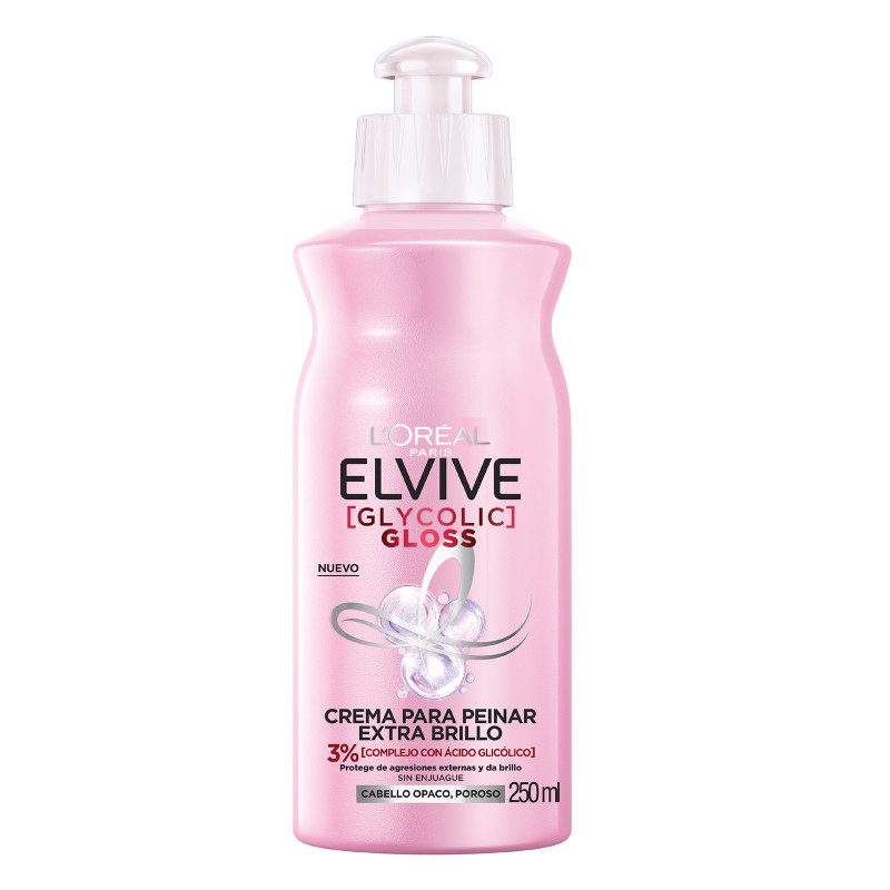 Nuestra crema para peinar Glycolic Gloss con extra brillo y 3% [Complejo con Ácido Glicólico], protege de agresiones externas, da brillo y desenreda.