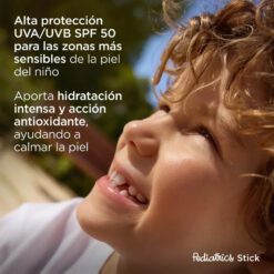 Pediatrics Stick SPF 50 es un protector solar en formato stick ideal para zonas sensibles y expuestas de la piel de bebés y niños. Su fórmula de alta protección SPF 50+ cuida la piel delicada desde los 6 meses, con una textura invisible, resistente al agua y al sudor. Hidrata intensamente, calma y refuerza la barrera cutánea con ingredientes dermocosméticos de alta eficacia.