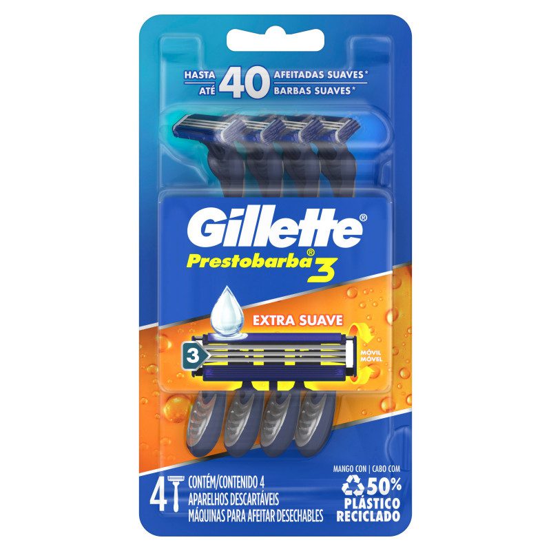 GILLETTE PRESTOBARBA 3 HOJAS MÁQUINA X 4 U