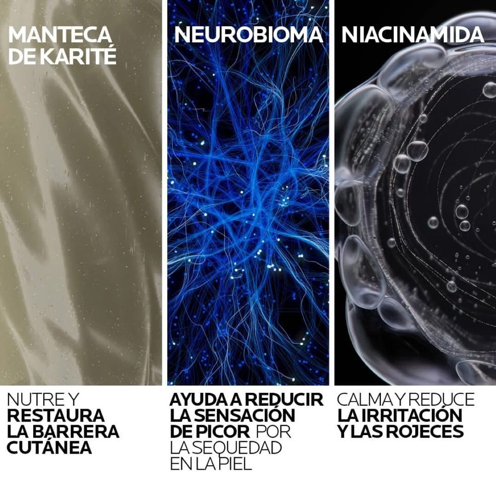 Gracias a su innovadora tecnología AP+M, que combina ingredientes que contribuyen a equilibrar el microbioma de la piel, este bálsamo ayuda a romper el ciclo de picor y rascado, mejorando el confort cutáneo y reduciendo la recurrencia de brotes de sequedad severa.
