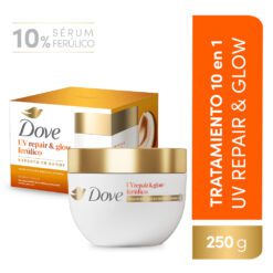 **Testeo instrumental sobre cabello expuesto a 72h de rayos UV, luego de 5 usos. 10% Sérum Ferúlico: con esta concentración, protegé las proteínas de tu pelo y dale hasta 10 veces más brillo. Bloquea la humedad, dejá el cabello suave al tacto y reducí el quiebre. Complementá con el shampoo, acondicionador y el óleo Dove Repair & Glow UV para un cuidado completo y efectivo. Revelá 15 veces más brillo y mantené el frizz bajo control por 48 horas. Fortalecé tu pelo, combatiendo el daño que lo deja opaco y sin brillo, gracias a su fórmula que repara e ilumina con 10% Serum Ferúlico y Lumi-Crystals.