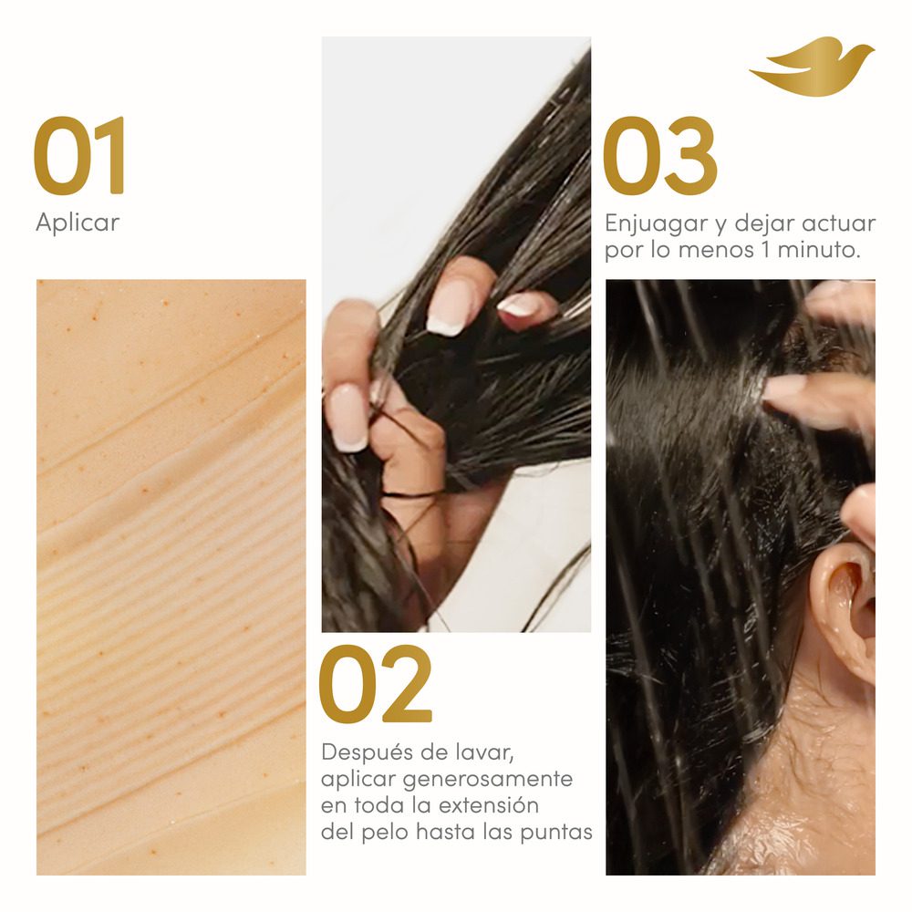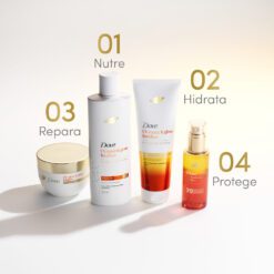 Prepárate para un cambio asombroso: no solo vas a reparar tu pelo, sino que vas a descubrir un brillo espectacular que dura. Revelá 15 veces más brillo y mantené el frizz bajo control por 48 horas. Con esta concentración de Sérum Ferúlico, dale a tu pelo hasta 10 veces más brillo. Para un cuidado completo y efectivo, te recomendamos complementar el uso de la máscara con el shampoo, acondicionador y el óleo Dove UV Repair & Glow. Brindale a tu pelo la protección y el tratamiento que necesita para lucir siempre impecable.