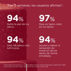 Ayuda a reparar la piel de los labios dañados y alivia de forma inmediata la sensación de irritación.