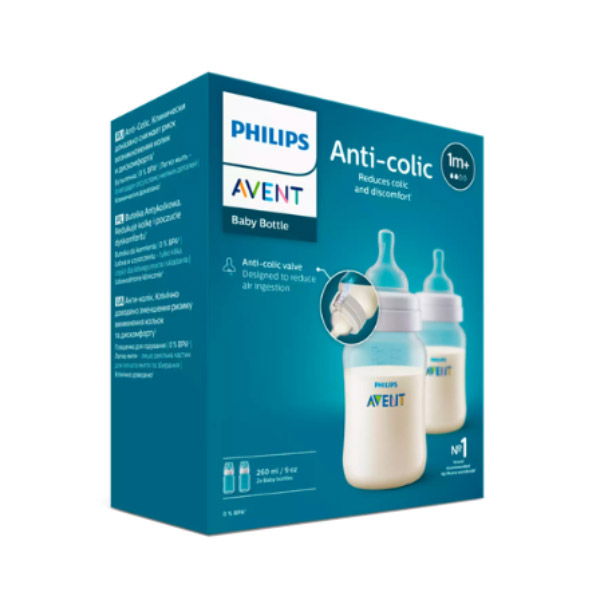 Nuestra válvula anticólicos clínicamente probada* está diseñada para reducir los cólicos y gases. En los estudios clínicos, se ha demostrado que el biberón Philips Avent reduce los cólicos y el malestar. Este se reduce significativamente por la noche, ya que los bebés alimentados con biberones anticólicos Philips Avent experimentaron un 60% menos de malestar que los bebés alimentados con biberones con abertura de la competencia.